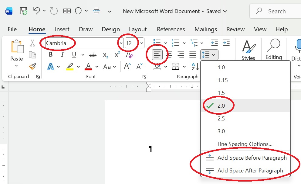 - Double line spacing